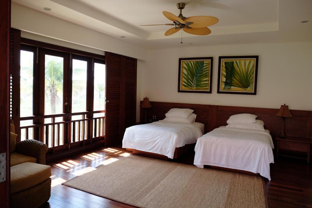 Biệt thự sở hữu sân hiên nhìn thẳng ra đại dương, nơi mỗi sáng bạn có thể nhâm nhi tách cà phê trong khi ánh bình minh nhuộm vàng từng con sóng. Bên trong, không gian được thiết kế với 4 phòng ngủ rộng thoáng, phòng khách thanh lịch với TV màn hình phẳng truyền hình cáp, và một căn bếp hiện đại đầy đủ tiện nghi. Hai phòng tắm riêng trang bị vòi xịt, chậu rửa vệ sinh và vòi sen áp lực mạnh; những chi tiết nhỏ như khăn tắm mềm mại hay ga giường thơm tho đều được chuẩn bị chỉn chu, mang đến cảm giác thân thuộc nhưng vẫn sang trọng.