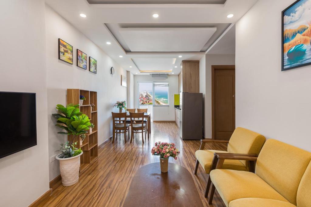 Với thiết kế mở, Apartment next to My Khe Beach phù hợp cho các cặp đôi, gia đình và nhóm bạn, mang đến không gian riêng tư nhưng vẫn tiện lợi. Ban công và sân hiên là nơi lý tưởng để tận hưởng bình minh, hoàng hôn hoặc thư giãn với một tách cà phê sáng.