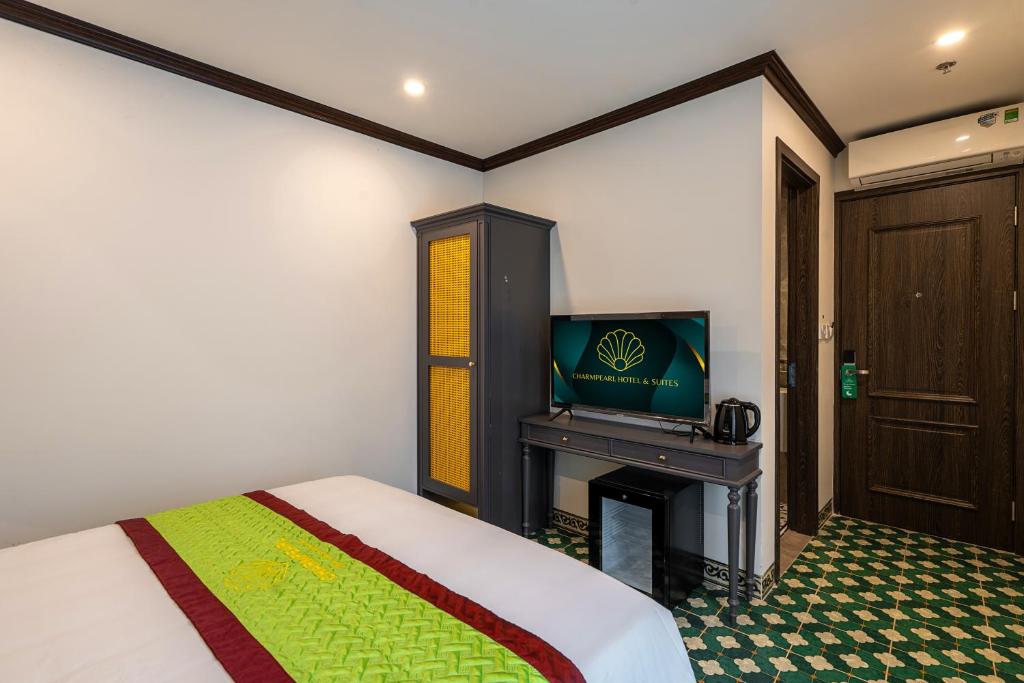 Mỗi căn phòng tại Charmpearl Hotel & Suites đều được thiết kế hiện đại, tinh tế với đầy đủ tiện nghi, mang đến sự thoải mái tối đa cho du khách. Trong phòng có phòng tắm riêng khép kín với vòi xịt hoặc chậu rửa vệ sinh tiện lợi, điều hòa nhiệt độ hiện đại phù hợp với thời tiết bốn mùa, TV màn hình phẳng cùng các kênh truyền hình đa dạng, và tủ lạnh mini giúp bảo quản đồ uống hoặc thực phẩm yêu thích.