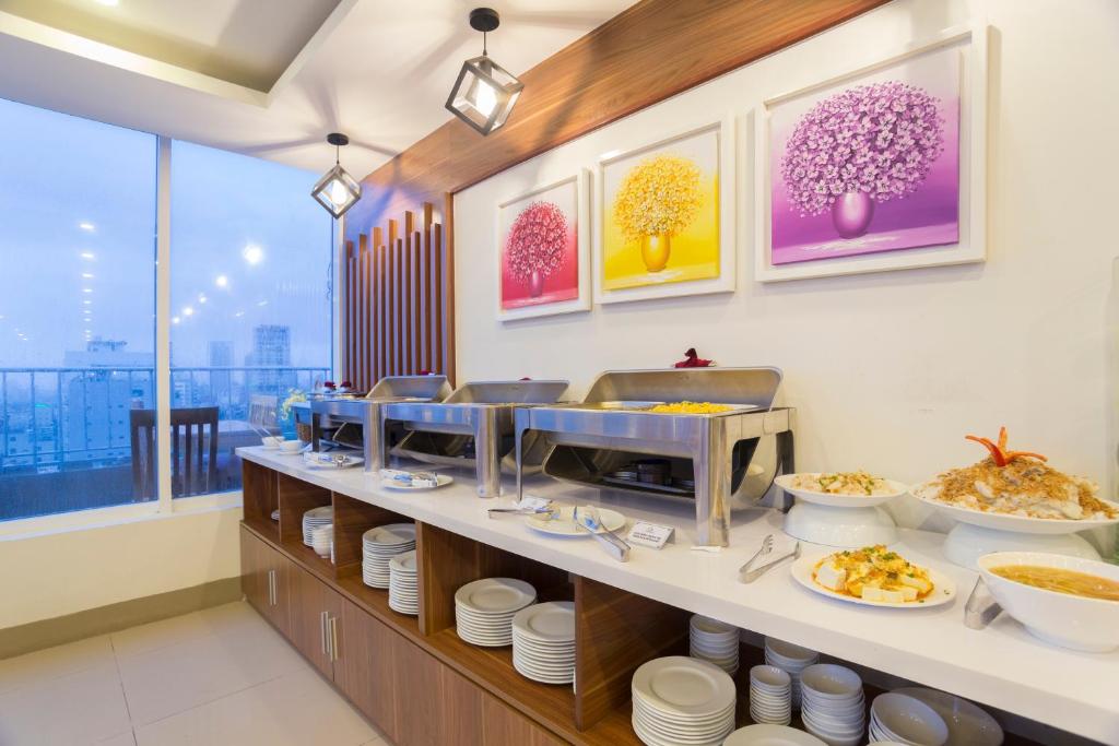 Khách sạn cung cấp nhà hàng trong khuôn viên, phục vụ đa dạng món ăn địa phương và quốc tế, từ những bữa sáng nhẹ nhàng đến bữa tối tinh tế. Ngoài ra, quầy lễ tân 24 giờ luôn sẵn sàng hỗ trợ khách, từ bàn đặt tour, phòng giữ hành lý cho đến dịch vụ thu đổi ngoại tệ, giúp du khách dễ dàng lên kế hoạch tham quan và trải nghiệm thành phố.