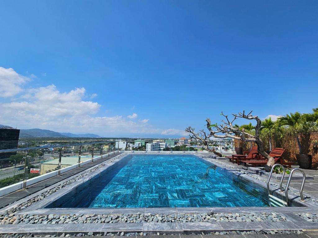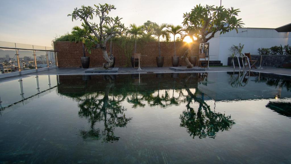 Sau một ngày dài khám phá Đà Nẵng, còn gì tuyệt vời hơn khi được đắm mình trong hồ bơi ngoài trời mát lạnh của khách sạn. Không gian hồ bơi được thiết kế hiện đại, tạo cảm giác riêng tư và thư thái, phù hợp để bạn nghỉ ngơi hoặc chụp những bức ảnh check-in sang chảnh.