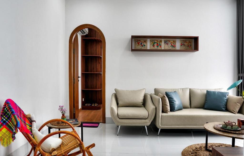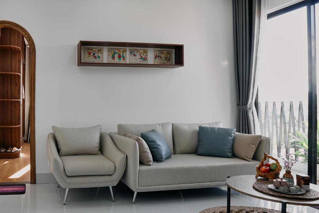 Điểm cộng lớn là các căn hộ có bếp riêng đầy đủ tiện nghi, cho phép bạn tự tay chuẩn bị những bữa ăn ngon miệng, phù hợp với cả khách đi dài ngày hoặc gia đình có trẻ nhỏ. Một số căn còn có ban công hoặc sân hiên nhìn ra thành phố, mang đến không gian thoáng mát, lý tưởng để thưởng thức cà phê sáng hoặc ngắm cảnh về đêm.