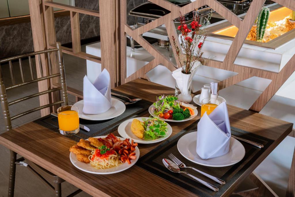 Nhà hàng sang trọng phục vụ bữa sáng buffet và thực đơn gọi món đa dạng