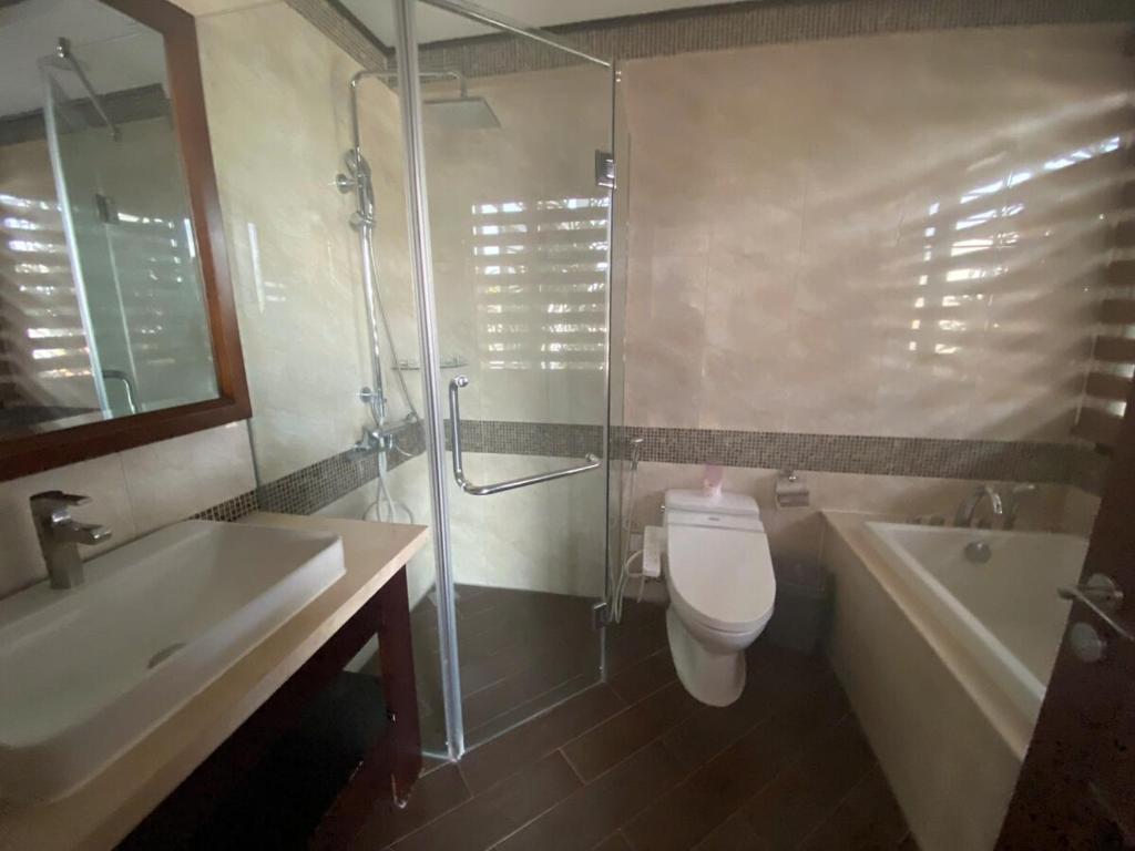 Căn hộ được thiết kế hiện đại với 3 phòng ngủ rộng rãi, phòng khách thoáng đãng và bếp đầy đủ tiện nghi. Tại đây, du khách có thể tự tay chuẩn bị bữa ăn với tủ lạnh, ấm đun nước, khu vực ăn uống và các thiết bị nhà bếp hiện đại khác. Mỗi phòng đều trang bị điều hòa, đảm bảo không gian mát mẻ và dễ chịu quanh năm. 3 phòng tắm với vòi sen và vòi xịt/chậu rửa vệ sinh, kèm theo đồ vệ sinh cá nhân miễn phí, mang lại trải nghiệm tiện nghi như khách sạn 5 sao. TV màn hình phẳng được bố trí trong phòng khách, tạo điều kiện thư giãn và giải trí cho cả gia đình hoặc nhóm bạn.