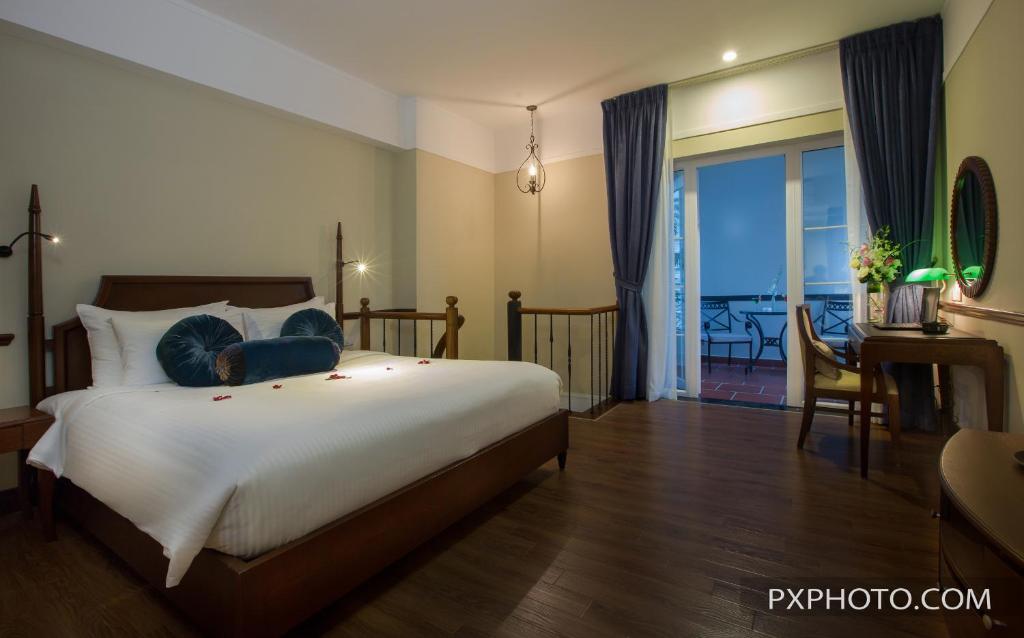 • Siesta Classic: trắng kem – xanh ngọc, giường king 2m2, cửa sổ mở ra thấy Ô Quan Chưởng