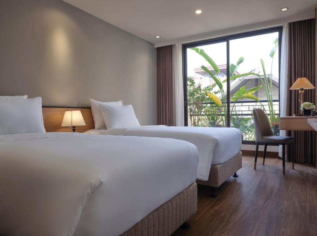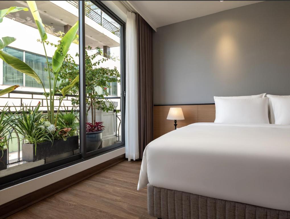 Đặc biệt, một số phòng có ban công riêng nhìn ra thành phố Hà Nội, rất thích hợp cho những ai muốn ngắm cảnh đêm lung linh hoặc tận hưởng không khí trong lành buổi sáng.
