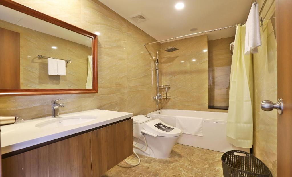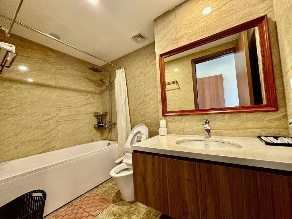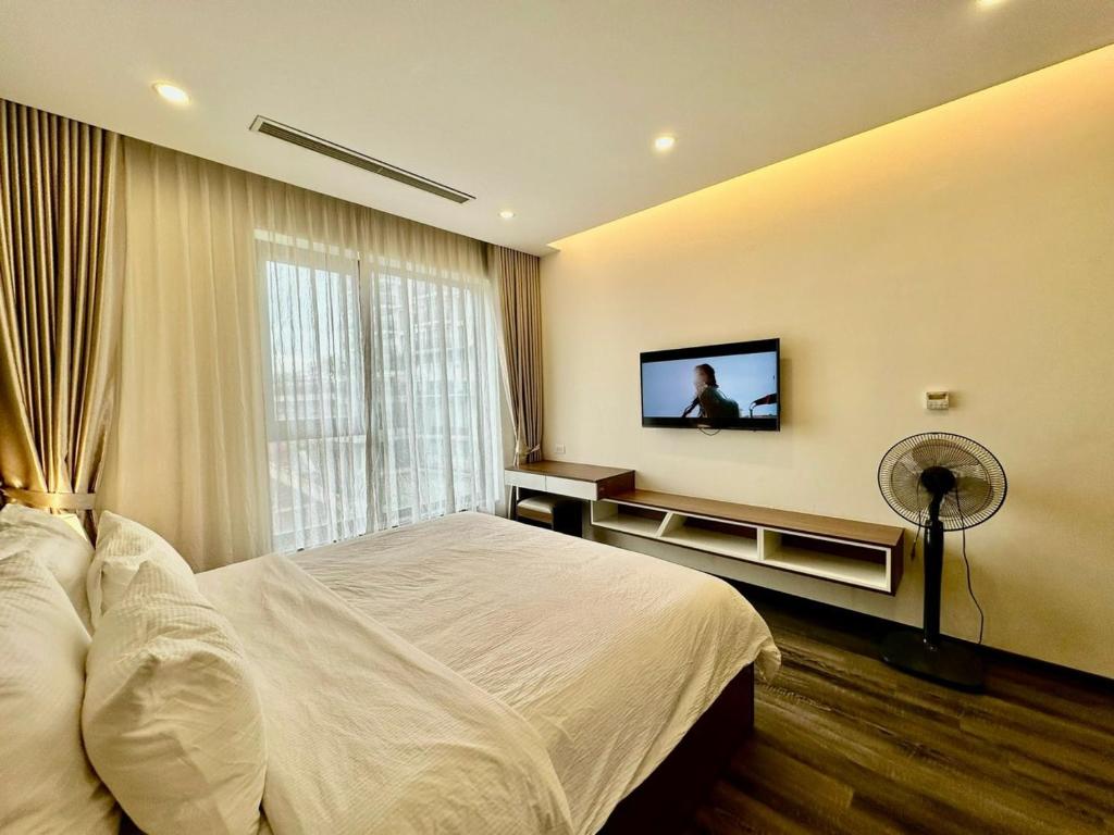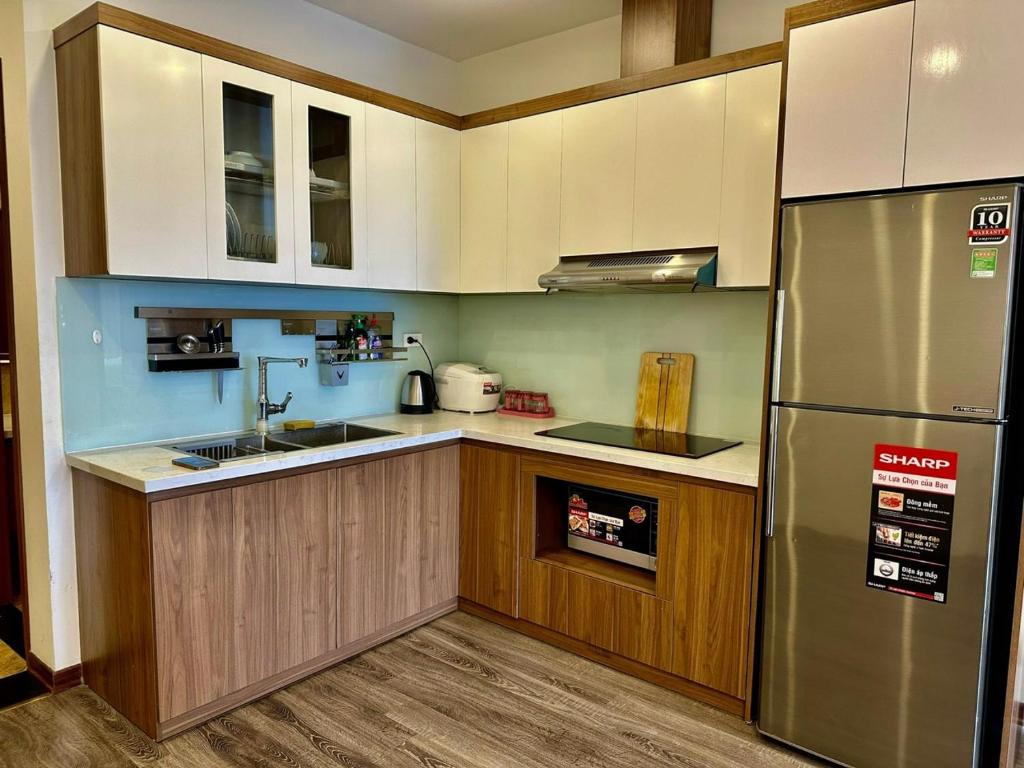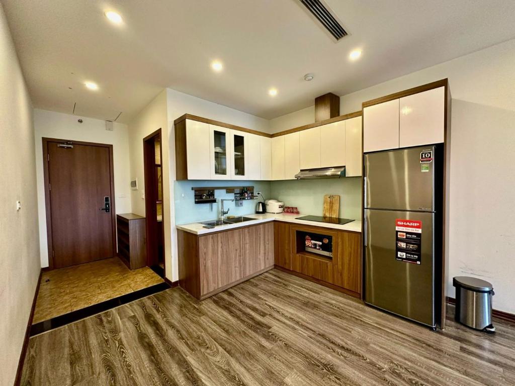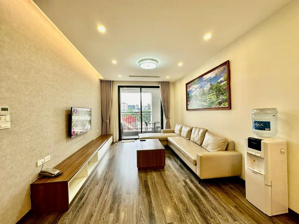 Mỗi căn hộ đều có ban công riêng, nơi du khách có thể thưởng thức tầm nhìn toàn cảnh thành phố, cảm nhận không khí trong lành và nhịp sống năng động của Hà Nội. Không gian phòng được bố trí tinh tế với khu vực ghế ngồi thoải mái, TV màn hình phẳng, bếp đầy đủ tiện nghi với tủ lạnh và lò vi sóng, mang đến sự thuận tiện tối đa cho việc nấu nướng và thư giãn tại chỗ. Phòng tắm riêng hiện đại đi kèm vòi sen và đồ vệ sinh cá nhân miễn phí, giúp trải nghiệm lưu trú thêm phần tiện nghi và thư giãn.