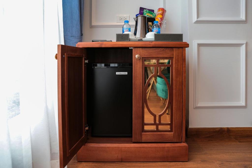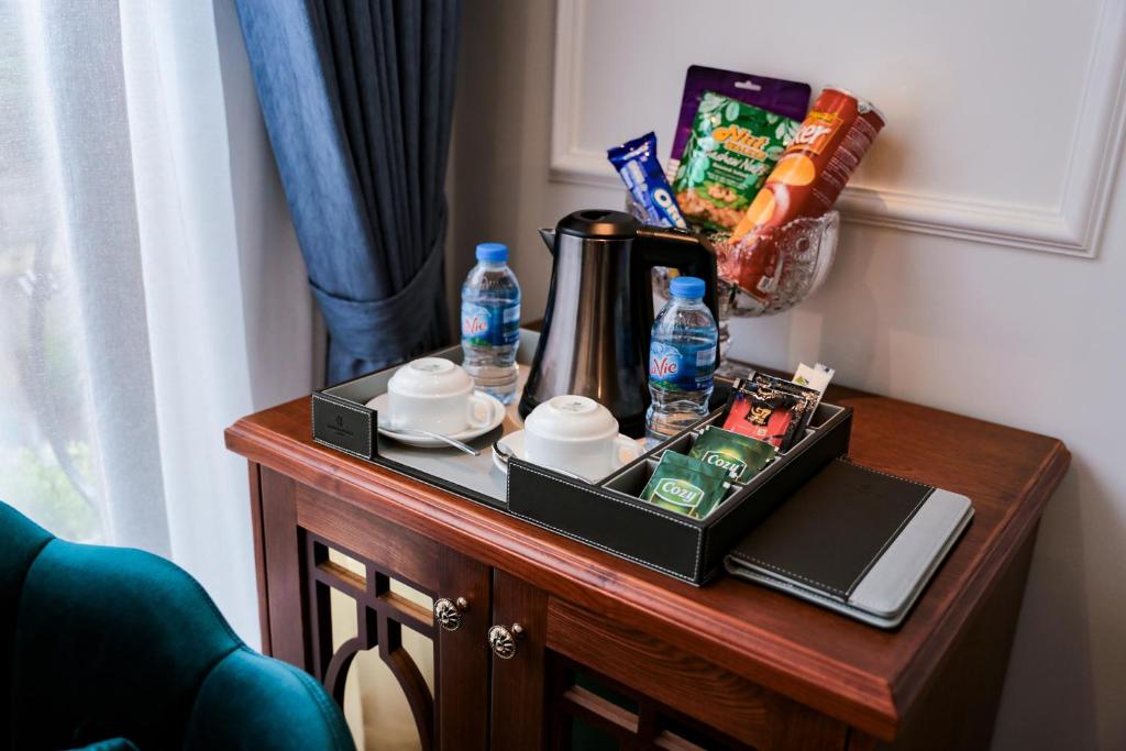 Bước vào sảnh là rơi tõm vào một cái ôm sang trọng kiểu rất Hà Nội: đèn chùm pha lê nhỏ giọt, sàn đá marble hoa văn cũ, quầy lễ tân gỗ gụ bóng loáng, và mùi tinh dầu quế thoang thoảng khiến bạn quên béng cái nóng 40 độ ngoài kia. Nhân viên mặc áo dài tím than, nụ cười ngọt hơn cả cà phê trứng, nói tiếng Anh nhanh như dân London nhưng vẫn pha chút giọng Hà Nội 36 phố phường rất duyên.