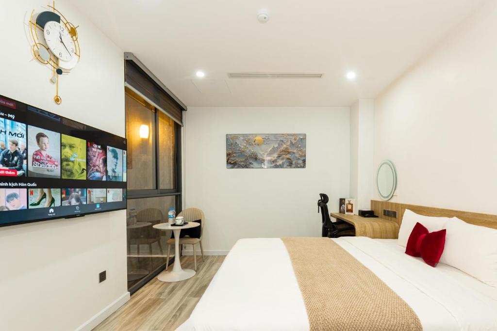 Không gian lưu trú hiện đại, sang trọng với phòng tắm riêng, điều hòa, TV màn hình phẳng và tủ lạnh