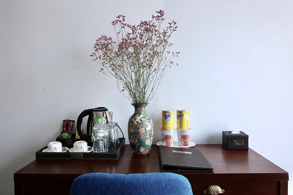 Từ phòng nghỉ, bạn có thể tận hưởng sự yên tĩnh giữa trung tâm thành phố, với đầy đủ tiện nghi như tủ lạnh, ấm đun nước và không gian rộng rãi để làm việc hoặc thư giãn.