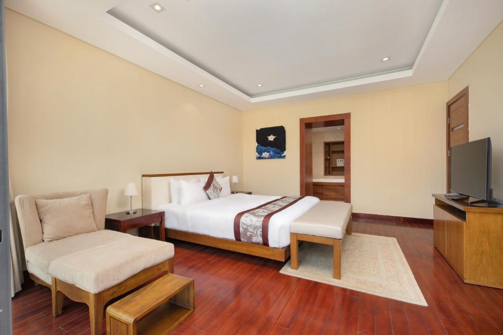 Vị trí của The Ocean Villa Da Nang cũng là một lợi thế không thể bỏ qua. Chỉ vài phút di chuyển, bạn sẽ chạm đến bãi tắm Tân Trà trải dài với cát trắng mịn, hay thử sức mình trên những sân golf danh tiếng như Montgomerie Links và Montgomerie Links Vietnam Golf Club – nơi hội tụ giới thượng lưu toàn cầu. Đặc biệt, sân bay quốc tế Đà Nẵng chỉ cách 12 km, và khách sạn có dịch vụ đưa đón chuyên nghiệp với chi phí hợp lý, đảm bảo hành trình của bạn thêm phần thuận lợi.