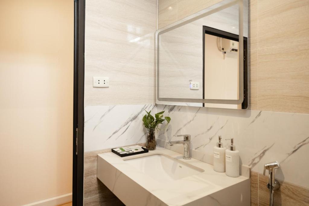 Phòng nghỉ được trang bị điều hòa riêng biệt, TV màn hình phẳng, tủ lạnh mini, cùng phòng tắm riêng hiện đại có vòi xịt/chậu rửa vệ sinh tiện dụng. Với tiêu chí “đơn giản mà đủ đầy”, mọi tiện nghi đều hướng đến sự thuận tiện tuyệt đối cho khách lưu trú dài ngày hoặc chuyến nghỉ ngắn hạn.