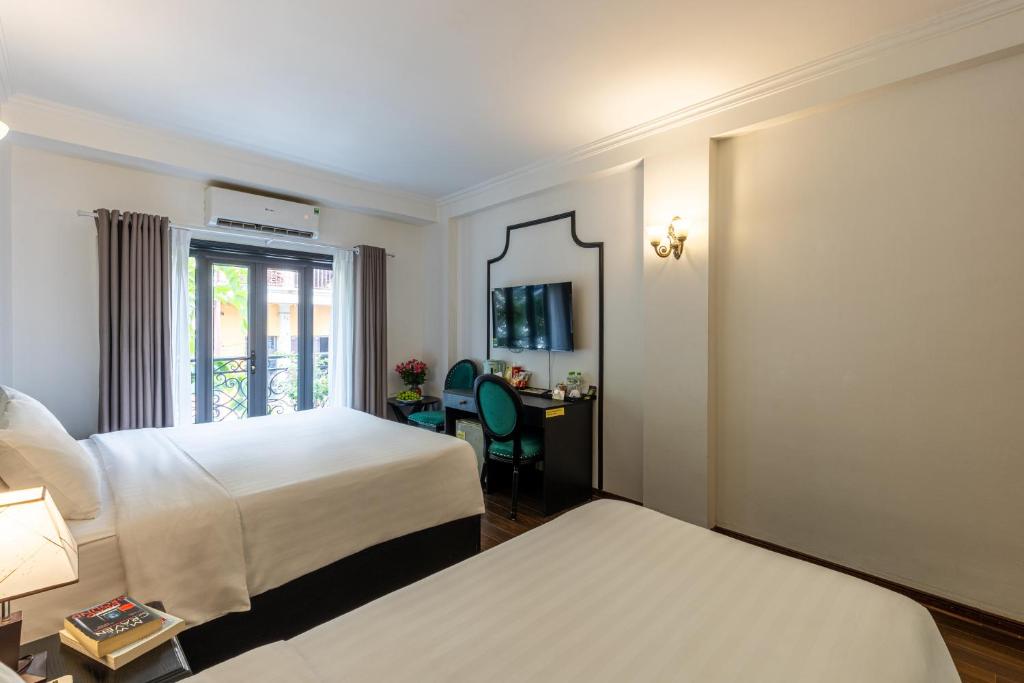 Ngõ Đinh Lễ, khúc phố “gần hồ nhất còn sót lại”, chỉ cách Hồ Gươm, Đền Ngọc Sơn và Nhà hát Múa rối đúng 3 phút thong dong, có một toà nhà Pháp cổ 7 tầng sơn xanh lá mạ nhạt – trắng sữa đứng im lặng như một ngôi nhà cũ của bà nội vừa được sơn mới giữa lòng Hà Nội. Biển gỗ nhỏ chỉ khắc dòng chữ Hanoi House Hotel & Travel bằng font viết tay, đèn dây vàng ấm, chậu cây xanh mướt tràn từ ban công tầng 2 xuống tận vỉa hè. Dân Hà Nội gốc và khách Tây “ở lâu” gọi tắt là “House Xanh”, vì đây không phải khách sạn, đây là nhà thật sự: bước vào là thấy mùi cốm mới, nghe tiếng bà hàng xóm rao bánh cuốn, và cảm giác “về nhà rồi”.