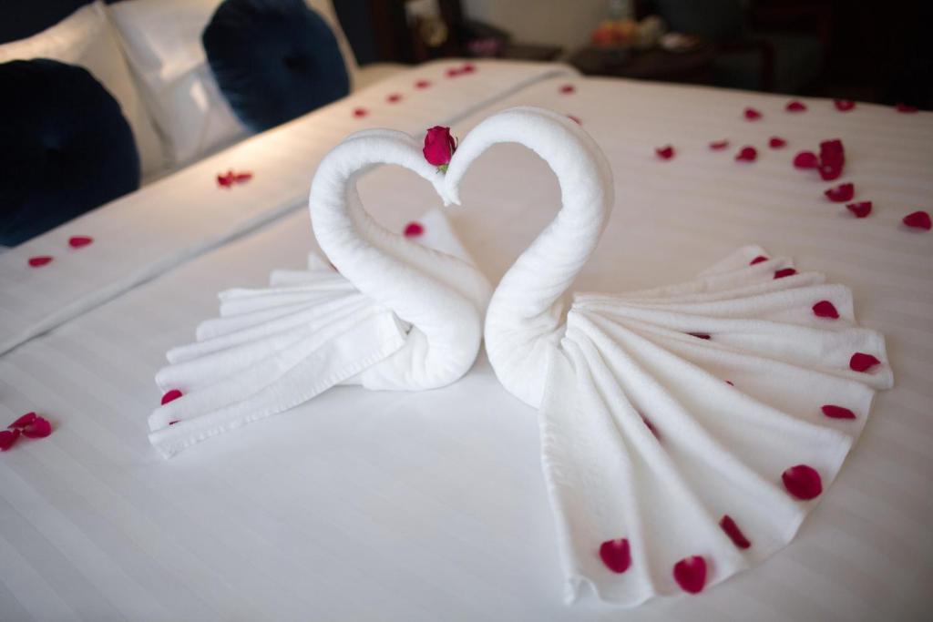 - Serene Sanctuary: tầng 7, giường tròn phủ khăn linen thêu tay, chai cacao nóng + hộp bánh quy bơ nhà làm chờ sẵn