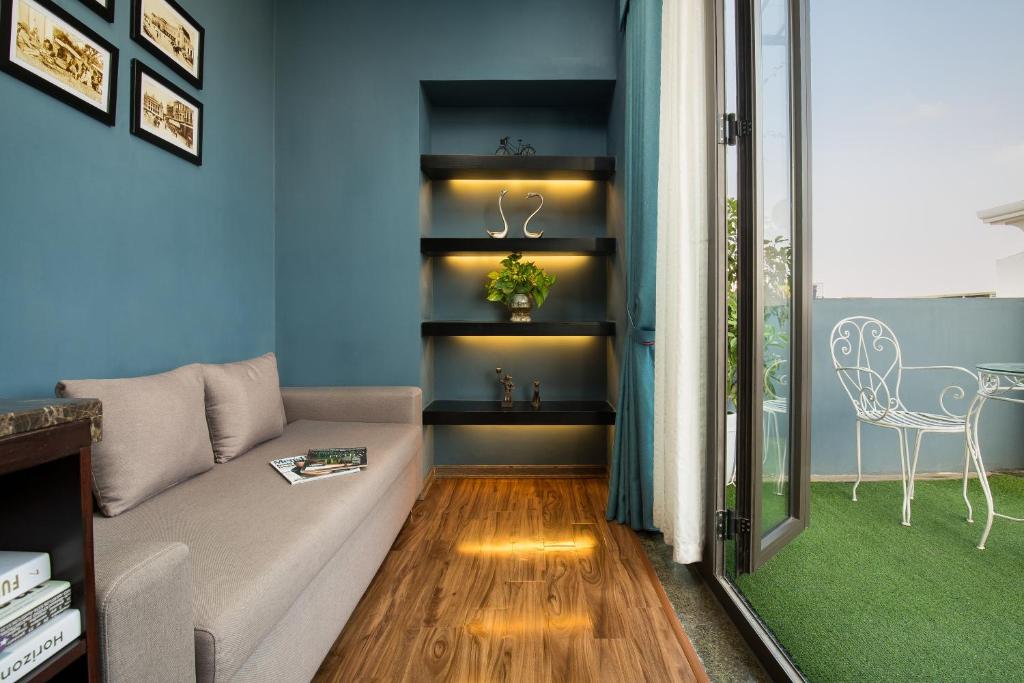 - Serene Balcony: ban công thật lát gỗ, ghế mây + bàn trà nhỏ, tối ngồi nghe tiếng xe đạp lọc cọc dưới ngõ