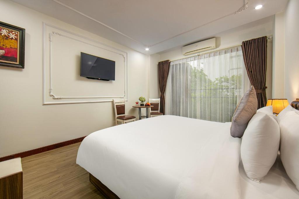 - Tunger Classic: đỏ rượu – vàng, giường king 2m2, cửa sổ nhìn Nhà hát Múa rối