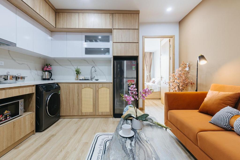 Các căn hộ tại Crescendo Urban Stay được thiết kế với phong cách tinh tế, kết hợp sự ấm cúng và tiện nghi. Từ ban công riêng, du khách có thể phóng tầm mắt ngắm nhìn quang cảnh thành phố Hà Nội sôi động. Không gian sinh hoạt bao gồm khu vực ghế ngồi rộng rãi, TV màn hình phẳng hiện đại, cùng bếp được trang bị đầy đủ tiện nghi như tủ lạnh, lò vi sóng và dụng cụ nấu nướng, giúp du khách dễ dàng tự tay chuẩn bị bữa ăn.