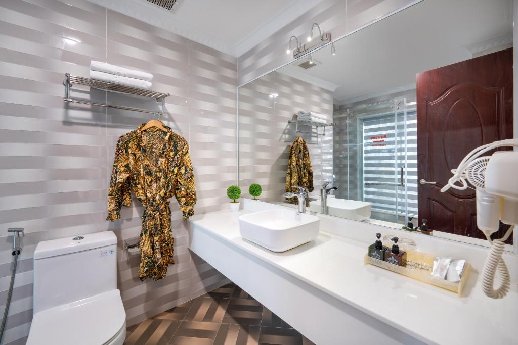 Royal Beach Hotel by THG mang đến những căn phòng được thiết kế tinh tế, mỗi chi tiết đều hướng đến sự thoải mái cho du khách. Không gian phòng trang bị điều hòa mát lạnh, khu vực ghế ngồi dễ chịu cùng TV màn hình phẳng với truyền hình cáp giải trí đa dạng. Két an toàn bảo đảm sự yên tâm cho hành lý và tài sản cá nhân. Phòng tắm riêng sáng bóng với vòi sen hiện đại, đồ vệ sinh cá nhân miễn phí và máy sấy tóc, tất cả mang đến trải nghiệm thư giãn ngay trong không gian riêng. Ngoài ra, mỗi căn đều có bàn làm việc rộng rãi và ấm đun nước tiện lợi, phù hợp cho cả khách du lịch lẫn khách công vụ.