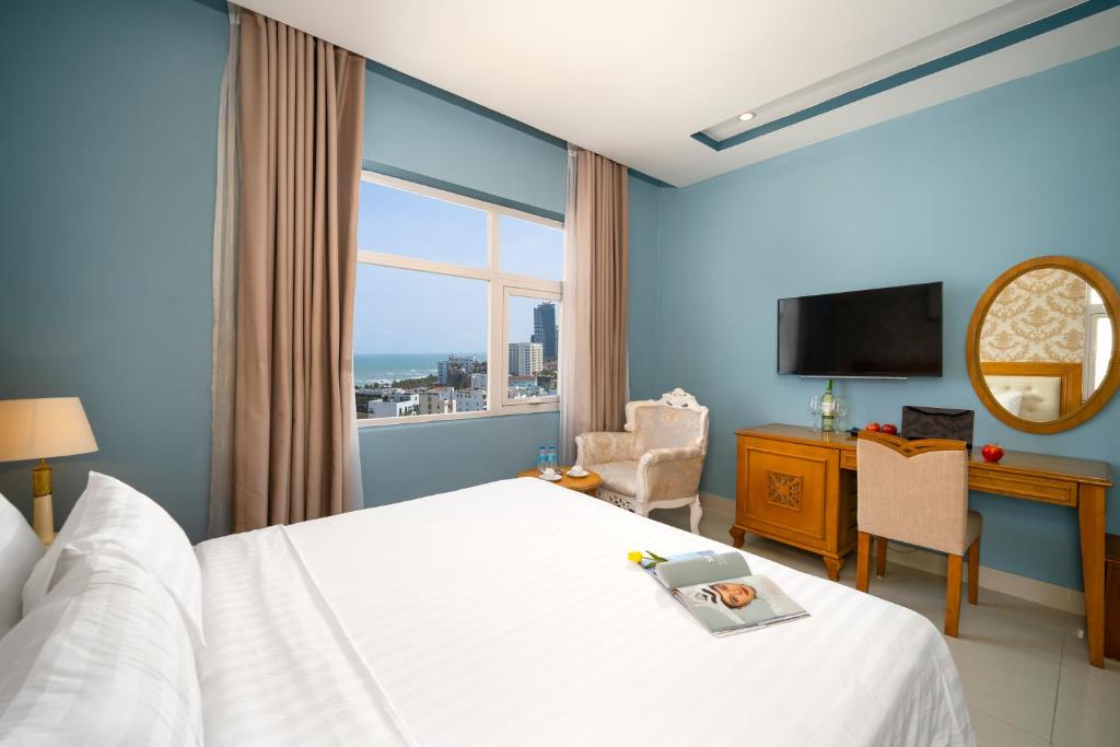 Ngoài ra, đội ngũ nhân viên thân thiện và chuyên nghiệp luôn sẵn sàng hỗ trợ khách về dịch vụ hành lý, giặt là cũng như đưa đón sân bay. Đặc biệt, du khách có thể thưởng thức các món ăn địa phương đậm đà hương vị miền Trung ngay tại nhà hàng trong khuôn viên khách sạn