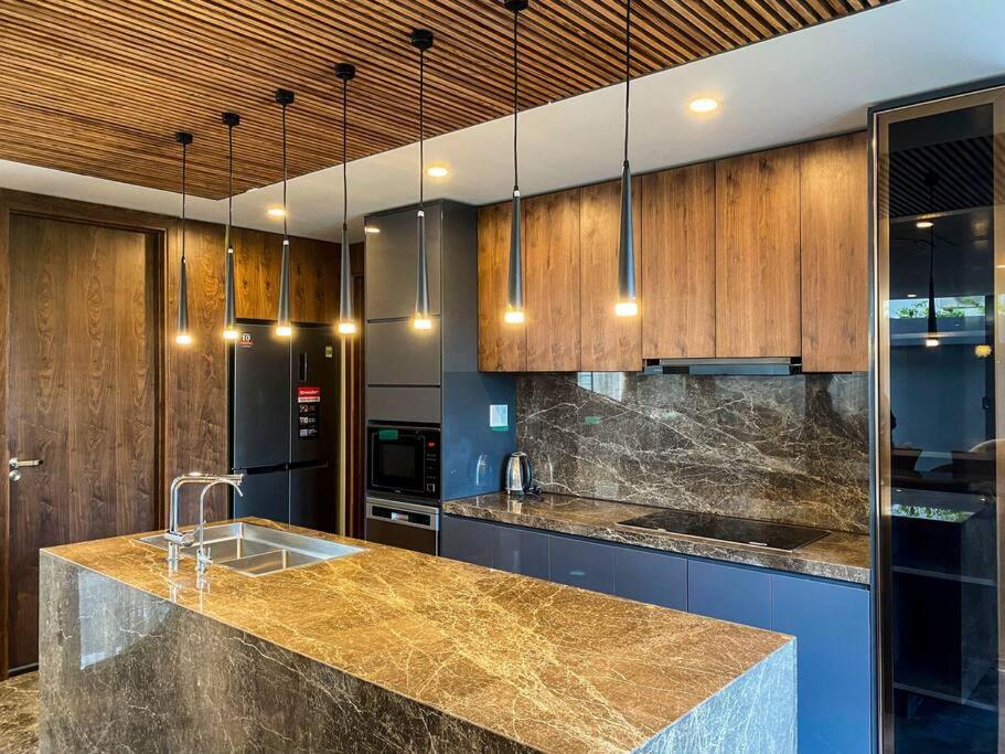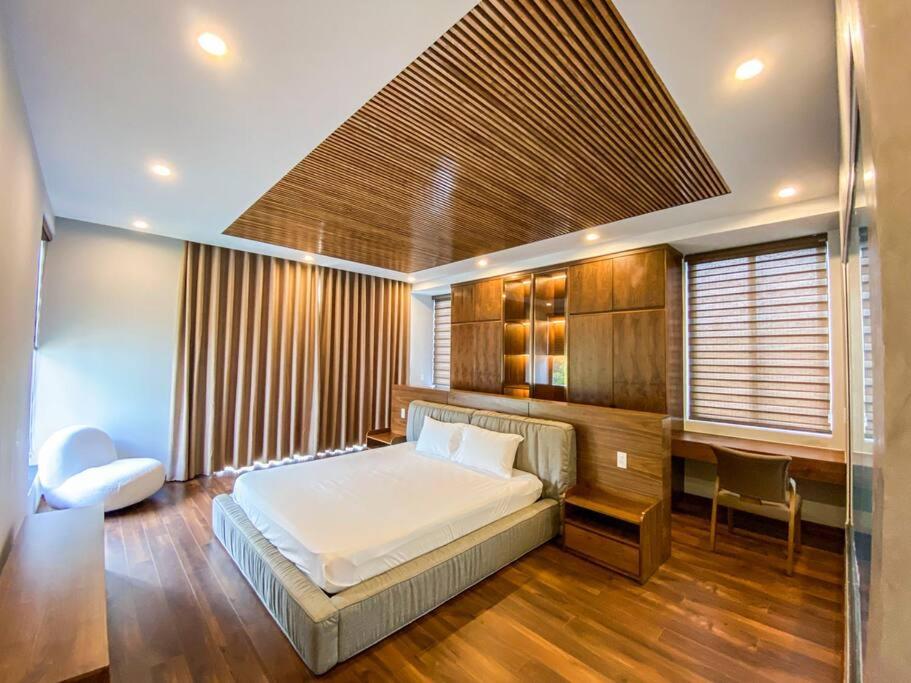 Song Cat Villa 59NL gây ấn tượng mạnh với thiết kế hiện đại, không gian rộng rãi và sự kết hợp hài hòa giữa thiên nhiên và tiện ích. Biệt thự có bốn phòng ngủ rộng rãi được trang bị điều hòa và nội thất tinh tế, mang lại cảm giác thoải mái cho mọi thành viên. Năm phòng tắm riêng đều hiện đại, có vòi sen, chậu rửa vệ sinh, bồn sục và đầy đủ đồ dùng cá nhân miễn phí. Phòng khách thoáng đãng kết hợp cùng sân hiên riêng, lý tưởng để tổ chức những buổi tiệc BBQ hay đơn giản chỉ là thưởng thức tách cà phê sáng cùng bạn bè. Bếp được trang bị đầy đủ tiện nghi như tủ lạnh, lò vi sóng, bếp nấu và dụng cụ ăn uống, cho phép bạn tự tay chuẩn bị những bữa ăn ngon miệng. Ngoài ra, biệt thự còn có máy giặt tiện lợi, giúp kỳ nghỉ dài ngày thêm thoải mái và tiết kiệm.
