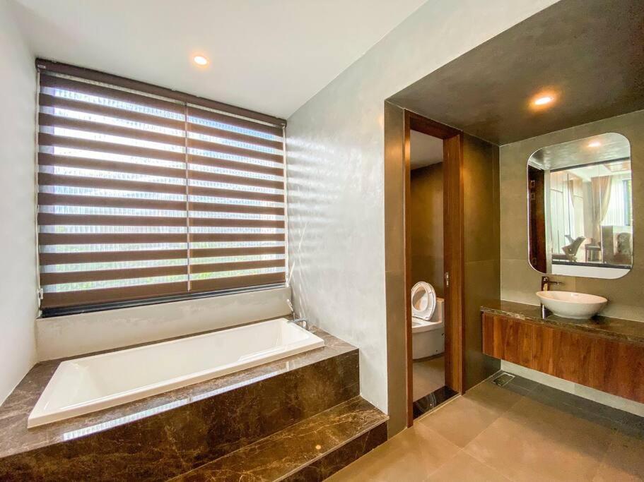 Điểm nhấn đặc biệt của Song Cat Villa 59NL là hồ bơi riêng ngoài trời. Đây là không gian tuyệt vời để thư giãn sau một ngày dài tham quan hoặc tận hưởng giây phút vui đùa cùng gia đình. Bao quanh hồ bơi là khu vườn xanh mát, mang đến bầu không khí trong lành, giúp bạn hoàn toàn tách biệt khỏi sự ồn ào phố thị. Bên cạnh đó, villa còn trang bị phòng xông hơi khô và bể sục, mang lại trải nghiệm nghỉ dưỡng đẳng cấp không kém gì các resort sang trọng.