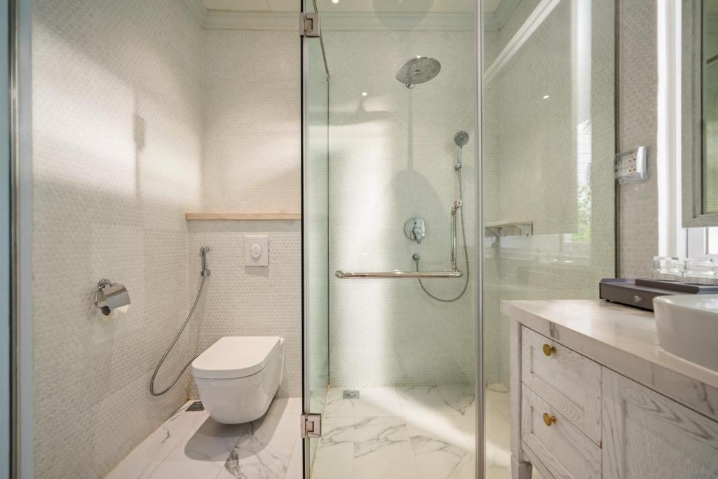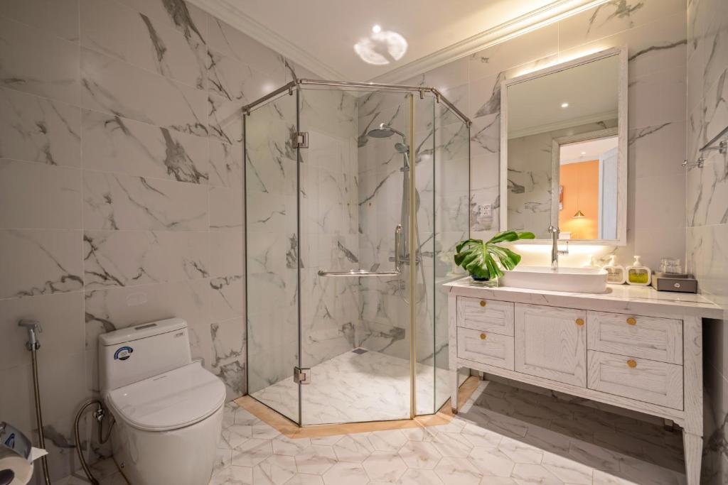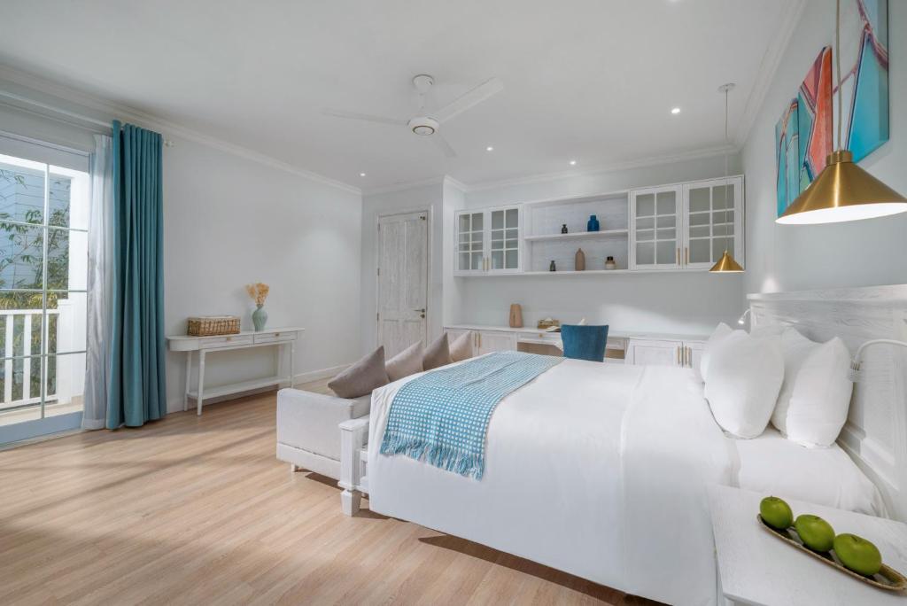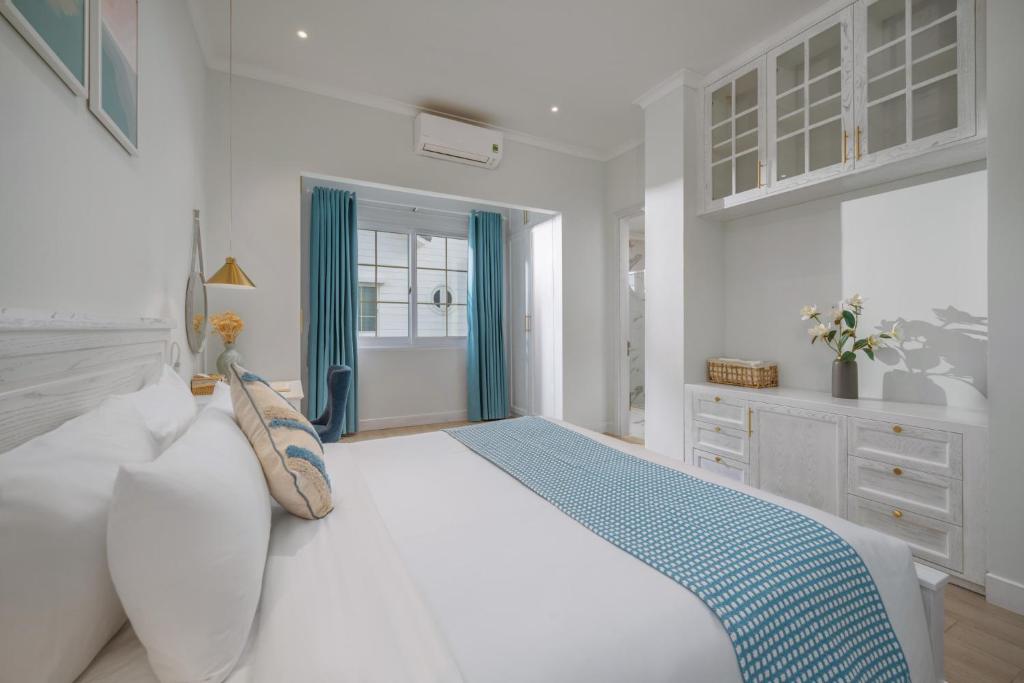 Điểm nổi bật của The Salt Villas Da Nang chính là diện tích rộng đến 250m², với 3 phòng ngủ4 phòng tắm riêng biệt, rất phù hợp cho gia đình lớn hoặc nhóm bạn từ 6–10 người. Mỗi phòng đều được trang bị điều hòa, ga trải giường cao cấpphòng tắm riêng hiện đại có vòi xịt/chậu rửa vệ sinh cùng đồ dùng cá nhân miễn phí.