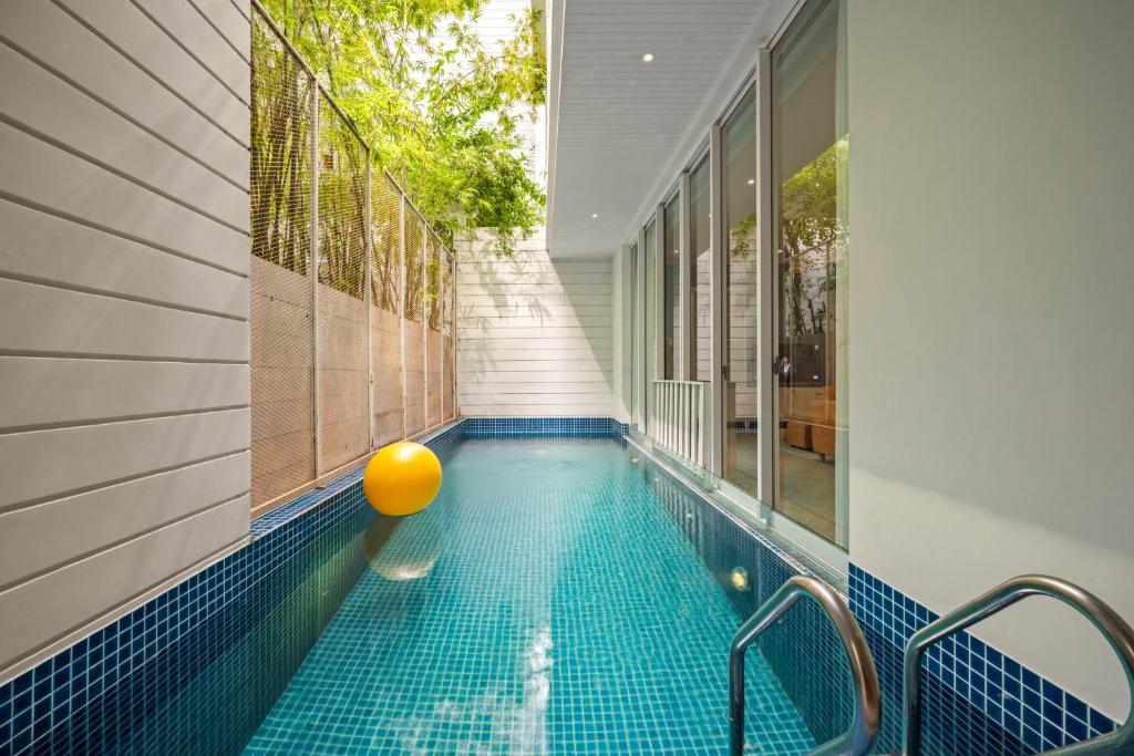 Khác với nhiều khu nghỉ dưỡng thông thường, The Salt Villas mang đến hồ bơi trong nhà – không gian lý tưởng để cả gia đình vui chơi, bơi lội bất kể thời tiết nắng mưa. Hồ bơi được thiết kế hiện đại, sạch sẽ, tạo cảm giác riêng tư tuyệt đối, giúp bạn tận hưởng những giây phút thư giãn trọn vẹn.
