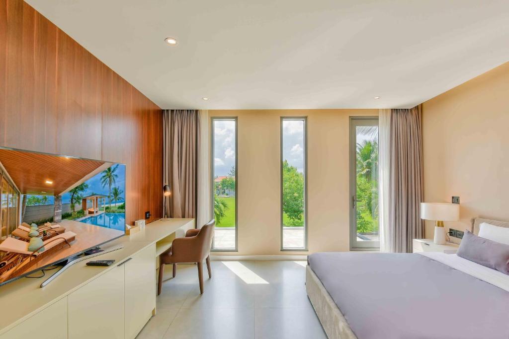 Các phòng nghỉ tại resort đều được thiết kế tinh tế, trang bị điều hòa, bàn làm việc, TV màn hình phẳng, két an toàn, tủ lạnh và lò nướng. Đặc biệt, mỗi phòng đều có sân hiên riêng với tầm nhìn hướng ra thành phố, mang đến sự thư thái và riêng tư. Phòng tắm được bố trí vòi xịt/chậu rửa vệ sinh, cùng đầy đủ ga trải giường và khăn tắm cao cấp.