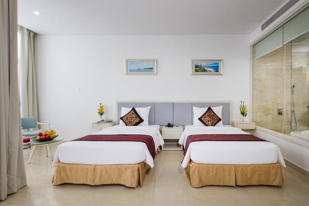 Tất cả các phòng nghỉ tại Diamond Bay Condotel đều được trang bị máy lạnh, TV màn hình phẳng, tủ lạnh và ấm đun nước điện. Một số phòng còn có khu vực tiếp khách hoặc khu vực ăn uống, phù hợp cho những chuyến đi dài ngày. Phòng tắm riêng có bồn tắm, đồ vệ sinh cá nhân miễn phí, khăn tắm và áo choàng tắm, mang đến cảm giác tiện nghi như ở nhà.