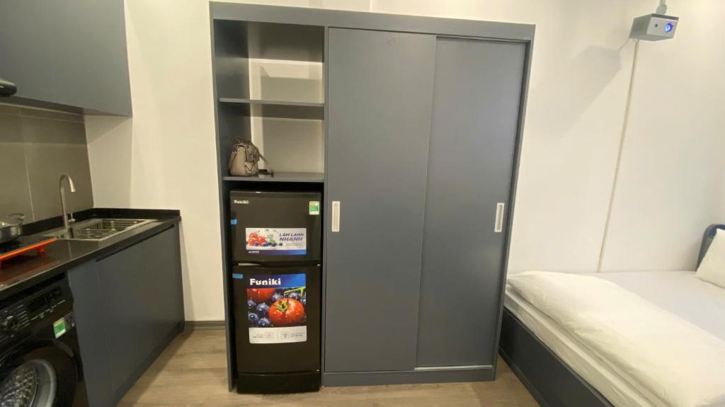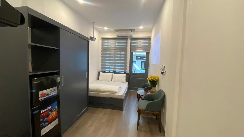 Bếp nhỏ được trang bị minibar hiện đại, cho phép bạn tự tay pha chế ly cà phê buổi sớm hoặc chuẩn bị bữa ăn nhẹ giữa những khoảnh khắc nghỉ ngơi.