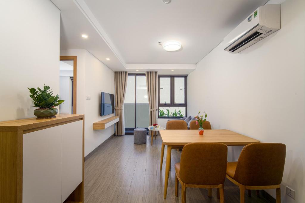 Mỗi căn hộ bao gồm khu vực ghế ngồi thoải mái, TV màn hình phẳng hiện đại, bàn ăn tiện lợi và một gian bếp đầy đủ vật dụng. Bạn có thể dễ dàng tự tay chuẩn bị bữa ăn nhờ bếp nấu, tủ lạnh, lò vi sóng và ấm đun nước được trang bị sẵn. Phòng tắm riêng đi kèm vòi sen, máy sấy tóc, dép đi trong phòng và đồ vệ sinh cá nhân miễn phí, đảm bảo sự tiện nghi và thoải mái trong suốt thời gian lưu trú.