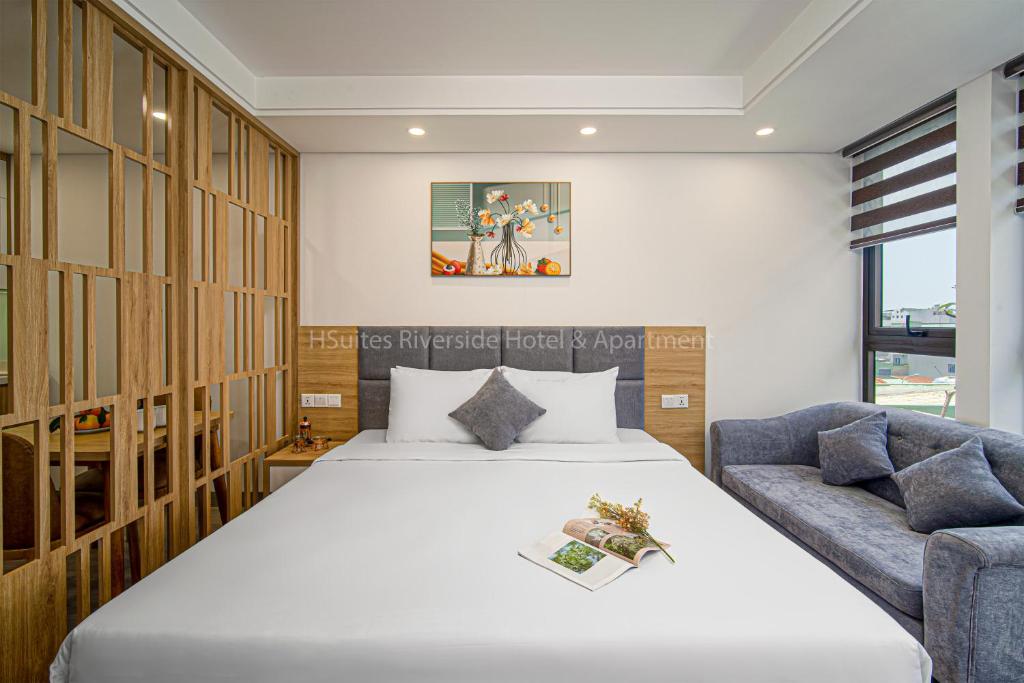 Điểm cộng lớn nhất của HSuites Riverside Hotel and Apartment chính là sự tiện nghi vượt trội. Tất cả các căn hộ đều được trang bị ban công riêng với tầm nhìn hướng ra thành phố, cho phép bạn ngắm nhìn nhịp sống Đà Nẵng cả ngày lẫn đêm. Không gian phòng được thiết kế hiện đại, tối giản nhưng không kém phần ấm cúng, mang đến cảm giác như đang ở trong chính ngôi nhà của mình.
