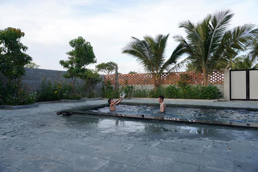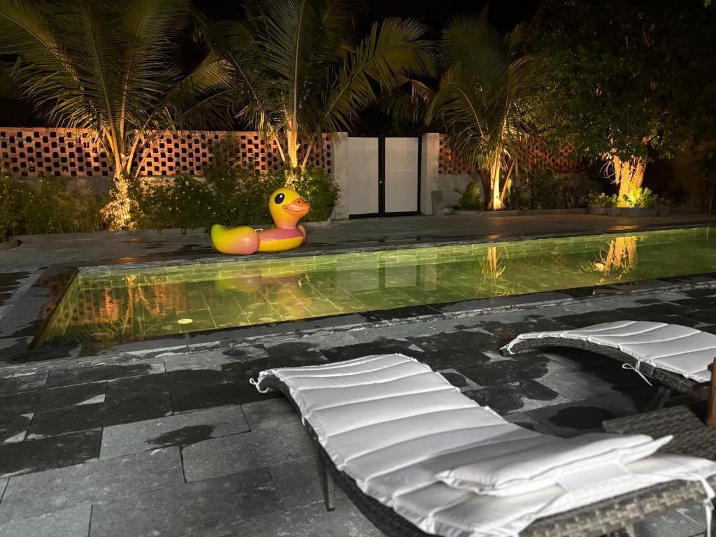 Điểm nhấn khiến KevilHome trở nên đặc biệt chính là hồ bơi ngoài trời riêng biệt. Thay vì chen chúc tại những bể bơi công cộng đông đúc, bạn có thể thoải mái ngâm mình trong làn nước mát, nhâm nhi ly cocktail, hoặc đơn giản là thả mình trên chiếc phao nổi đầy màu sắc. Xung quanh hồ bơi là khu vườn xanh mát, tạo nên một bầu không khí trong lành và thư giãn, hoàn hảo cho những buổi tiệc BBQ ngoài trời hoặc những khoảnh khắc lãng mạn vào buổi tối.