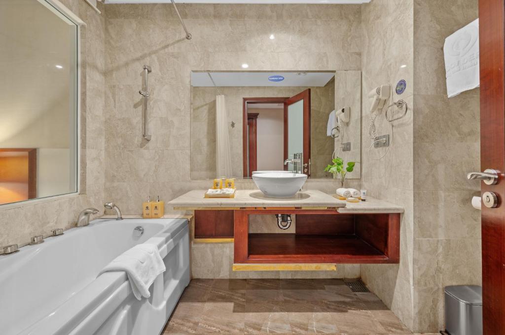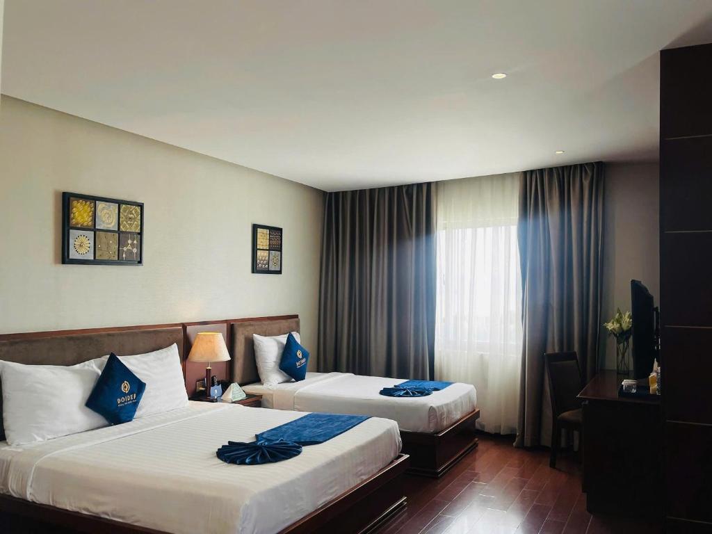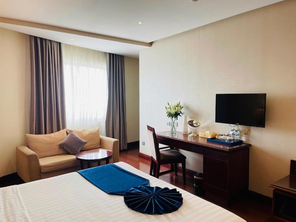 Mỗi phòng nghỉ tại khách sạn được thiết kế tinh tế, trang bị điều hòa, bàn làm việc, két an toàn, ấm đun nước, TV màn hình phẳng, cùng phòng tắm riêng hiện đại với vòi xịt/chậu rửa vệ sinh và nội thất cao cấp. Tất cả phòng đều có tủ quần áo rộng rãi, tạo sự tiện nghi tối đa cho khách trong thời gian lưu trú.