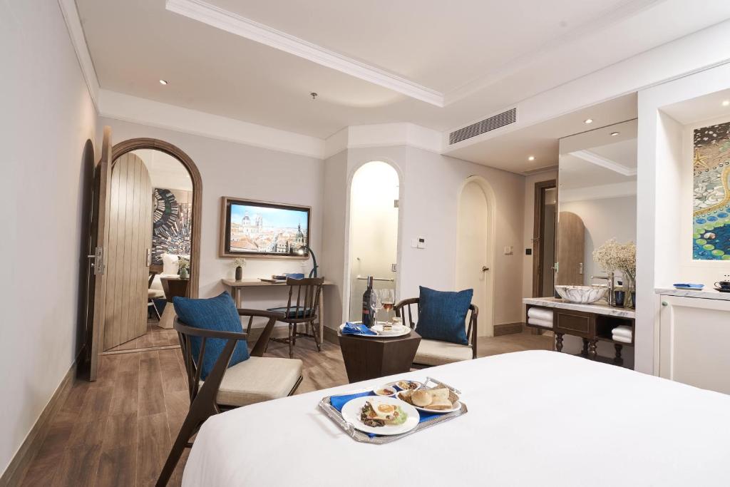 Mỗi phòng đều được trang bị đầy đủ tiện nghi cao cấp: điều hòa, TV truyền hình cáp màn hình phẳng, bàn làm việc, ấm đun nước, máy sấy tóc và tủ quần áo. Nội thất được thiết kế hiện đại với gam màu ấm áp, tạo nên không gian sang trọng nhưng vẫn gần gũi.