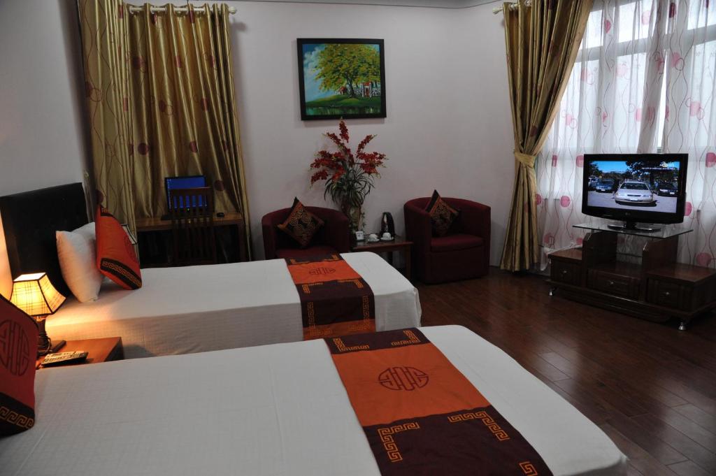 - Minibar miễn phí 100%: bia hơi Hà Nội lon, cà phê phin gói sẵn, bánh mì pate mini, nước suối La Vie