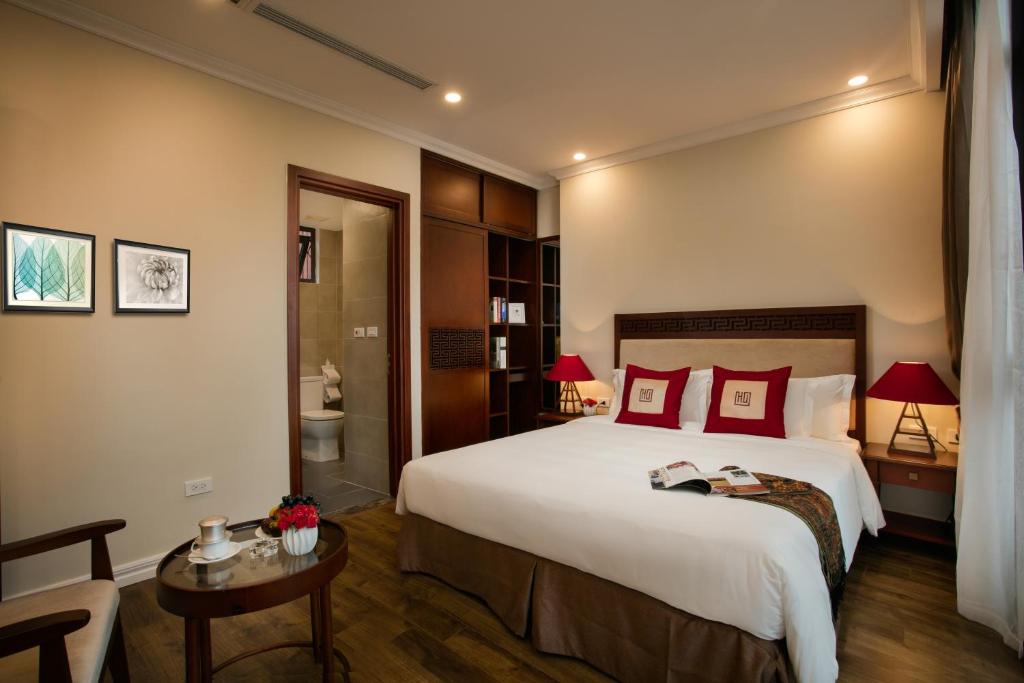 Từ khoảnh khắc bạn đặt chân qua ngưỡng cửa, Au Coeur d'Hanoi Apartment chào đón bằng làn gió mát lành từ khu vườn nhỏ hiếm hoi giữa lòng phố cổ chật hẹp – một ốc đảo xanh tươi giữa sa mạc bê tông. Thiết kế mang hồn cốt Pháp thuộc, xen lẫn nét tinh tế Á Đông, biến mỗi căn hộ thành một bức tranh sống động: sàn gỗ óc chó bóng loáng dưới chân, tường trắng tinh khôi điểm xuyết những nét chạm khắc cổ kính, và những ô cửa sổ lớn mở ra tầm nhìn lấp lánh về những mái ngói cong vút. Không khí ở đây không bao giờ ngột ngạt; thay vào đó, nó thì thầm lời ru êm ái, khiến bạn cảm nhận như đang trở về một ngôi nhà thứ hai, ấm áp và đầy bất ngờ. Hãy tưởng tượng: một buổi sáng se lạnh, bạn nhấm nháp cà phê Việt đậm đà bên hiên cửa, lắng nghe tiếng leng keng từ những gánh hàng rong xa xa, trong khi hồ Hoàn Kiếm lấp lánh dưới nắng mai chỉ cách vài bước chân. Đó không chỉ là chỗ ở; đó là một lời thì thầm từ linh hồn Hà Nội, mời gọi bạn hòa mình vào nhịp điệu riêng của thành phố.