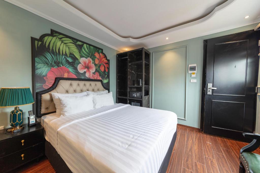 - Grand Royal Penthouse: tầng 12, 200 m², giường tròn 3 m, chai Dom Pérignon Vintage lạnh sẵn + hộp bánh cốm vàng lá 24K