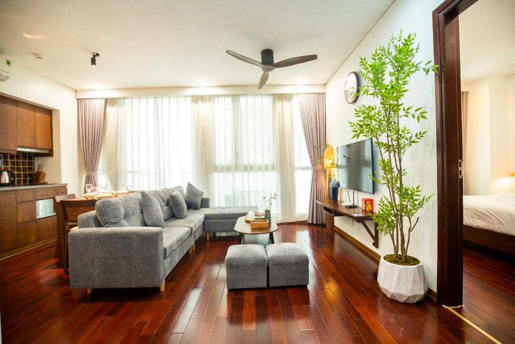Sự kết hợp giữa nội thất hiện đại và không gian thân thiện khiến mỗi căn hộ tại đây không chỉ phù hợp cho kỳ nghỉ ngắn ngày, mà còn là lựa chọn lý tưởng cho những ai muốn lưu trú dài hạn tại Hà Nội.