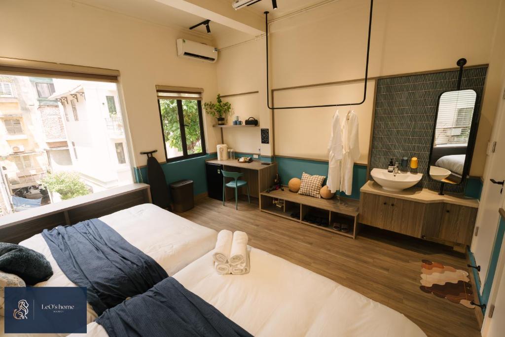 Phòng thì rộng thênh thang, kiểu rộng mà bạn có thể tập yoga giữa sàn mà không sợ đá trúng tường. Giường king-size to đùng, ga trắng tinh 100% cotton lạnh buốt, gối ôm êm đến mức sáng dậy cứ tưởng mình vừa ngủ ở resort Đà Lạt. Bàn làm việc dài 1m8 đặt ngay cạnh cửa sổ lớn nhìn ra phố cổ – ánh sáng tự nhiên chan hòa, wifi tốc độ 300Mb đối xứng, đủ để bạn họp Zoom với khách Tây mà không cần tắt camera vì ngại nền.