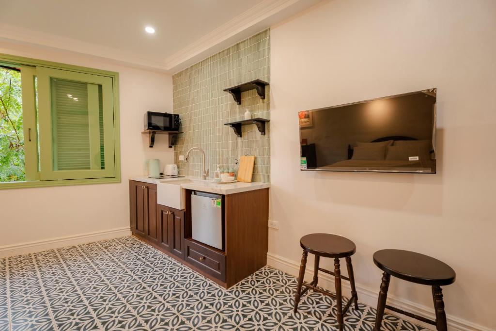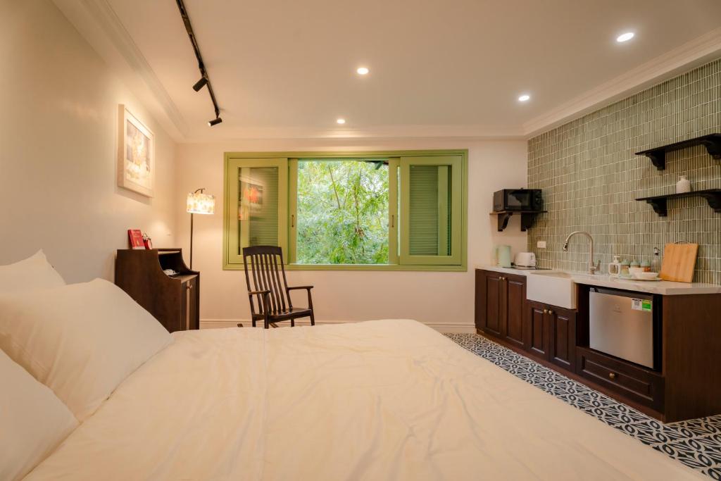 Các căn hộ được trang bị điều hòa không khí hiện đại, TV màn hình phẳng, khu vực tiếp khách riêng tư, cùng phòng bếp nhỏ tiện nghi với tủ lạnh, lò nướnglò vi sóng, giúp du khách có thể tự tay chuẩn bị những bữa ăn giản dị như đang ở nhà. Phòng tắm riêng sang trọng được lót đá sáng, có vòi sen nhiệt độ ổn định, chậu rửa vệ sinh hiện đại, cùng đầy đủ đồ dùng cá nhân cao cấp – tất cả tạo nên một trải nghiệm lưu trú vừa tiện lợi vừa tinh tế.