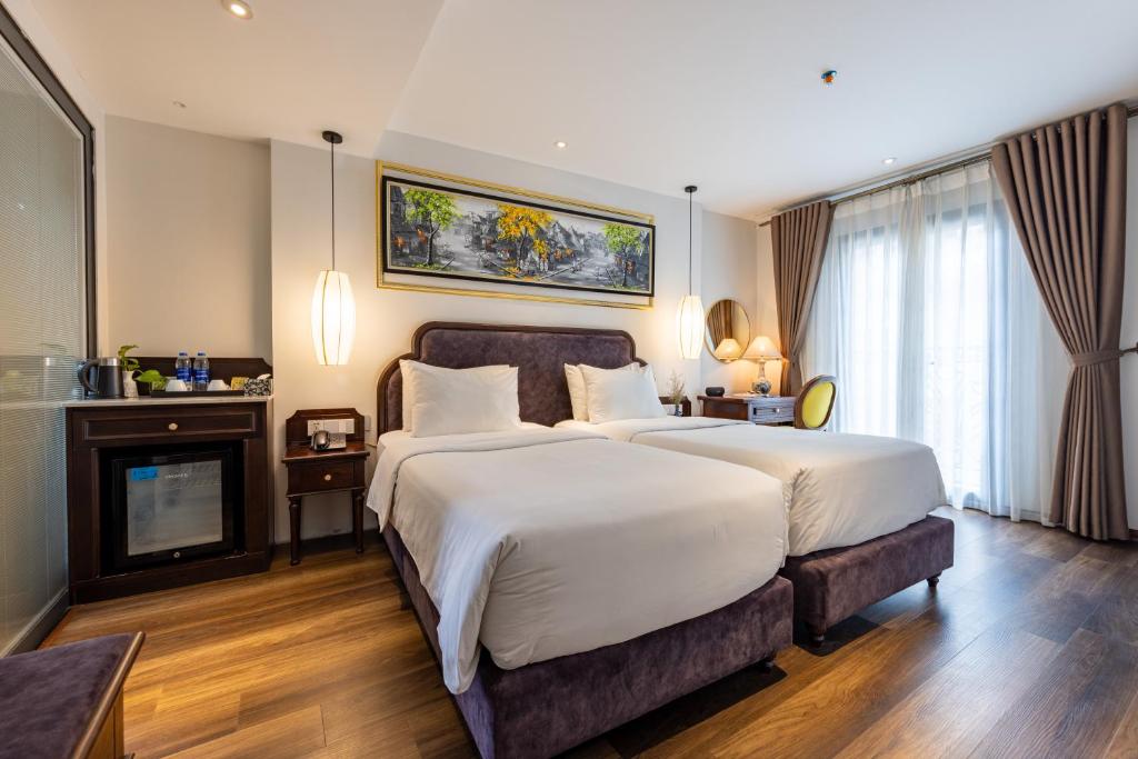 Ẩn mình kiêu hãnh ngay mạch máu sôi động của Hà Nội, chỉ cách Ga Hà Nội chớp mắt dưới một cây số, Calista Trendy Hotel & Spa vẫy gọi như khu vườn thượng lưu giữa sa mạc đô thị. Khách sạn bốn sao này không chỉ là điểm dừng chân, mà là cung điện phục hồi năng lượng với sân hiên lộng gió, trung tâm spa nuông chiều từng tế bào, cùng vị trí vàng son ôm trọn tinh hoa di sản. Lễ tân vận hành không ngừng nghỉ suốt ngày đêm, dịch vụ đưa đón sân bay mượt mà như dòng nước, phòng ốc phục vụ tận giường, kết nối Wi-Fi lan tỏa khắp ngóc ngách – tất cả dệt nên tấm thảm tiện nghi không tỳ vết.
