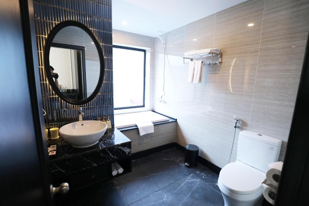 - Imperial Romance Suite: giường tròn 3 m phủ cánh hoa hồng tươi mỗi ngày, bồn tắm đôi oval trắng sứ đặt ngay cạnh cửa sổ, tối ngâm mình là thấy cả hồ Gươm lung linh