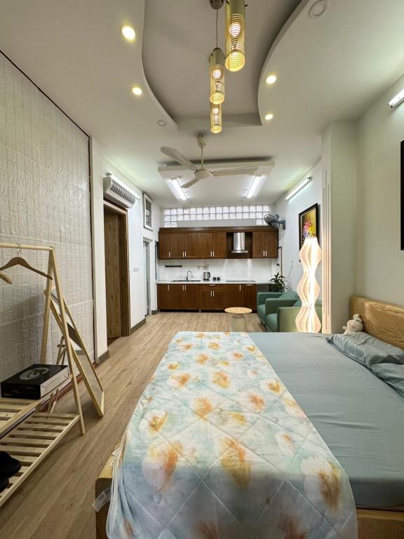 Căn hộ được trang bị đầy đủ tiện nghi cao cấp: TV màn hình phẳng, máy giặt hiện đại, đầu đĩa DVD, bàn làm việc rộng rãi, cùng phòng tắm riêng với vòi xịt/chậu rửa vệ sinh, đồ dùng cá nhân cao cấp và máy sấy tóc. Mọi chi tiết đều được chăm chút kỹ lưỡng, không chỉ để “ở” mà để thưởng thức sự an nhiên.