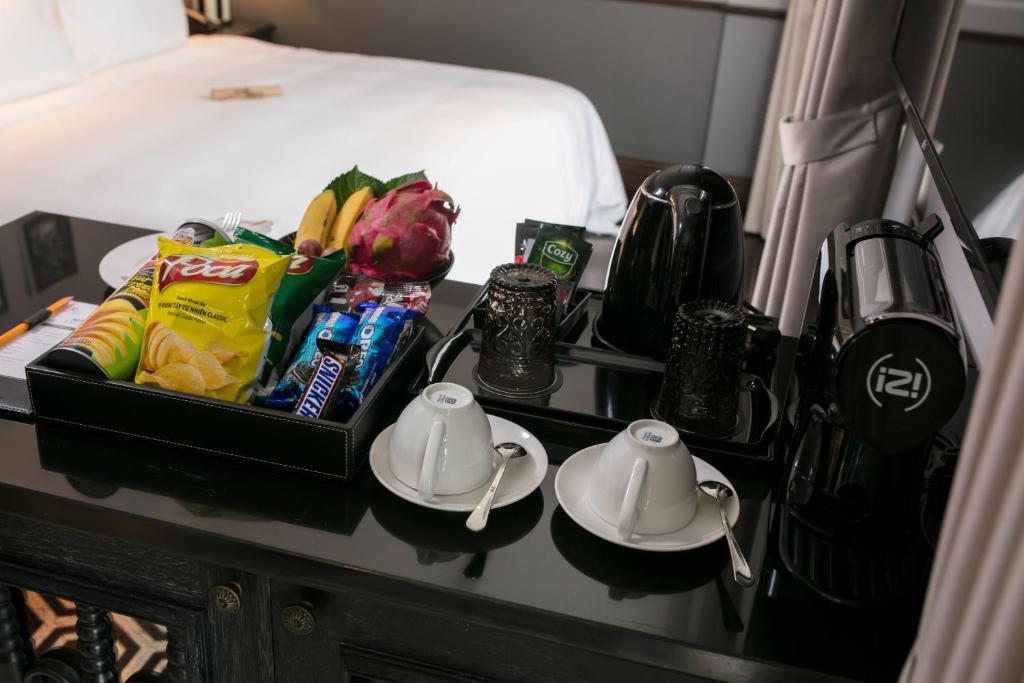 Ga giường là cotton satin 1000 sợi mát lạnh, gối chọn được 3 độ cứng, chăn lông vũ Hungary nhẹ tênh. Mỗi phòng đều có sofa góc, bàn làm việc gỗ óc chó, TV 55 inch có Netflix + YouTube sẵn, tủ lạnh mini đầy nước suối và bia thủ công Hà Nội, máy pha cà phê capsule Illy, bộ trà chiều với bánh ngọt tự làm để trên bàn – không ghi thêm tiền.