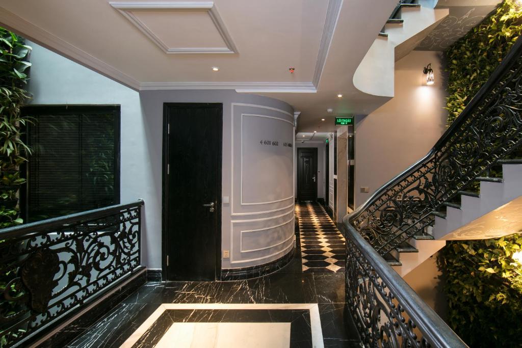 Sảnh nhỏ thôi, nhưng đẹp đến mức khiến người ta nín thở vài giây: trần cao 5 mét, đèn chùm đồng cũ, sàn gỗ lim bóng loáng, một góc đại dương dương cầm Steinway đen tuyền ai đó thỉnh thoảng ngồi gảy vài nốt “La Vie en Rose”. Mùi tinh dầu hoa nhài thoảng nhẹ, không nồng, chỉ đủ để bạn biết mình vừa bước vào một nơi đặc biệt.