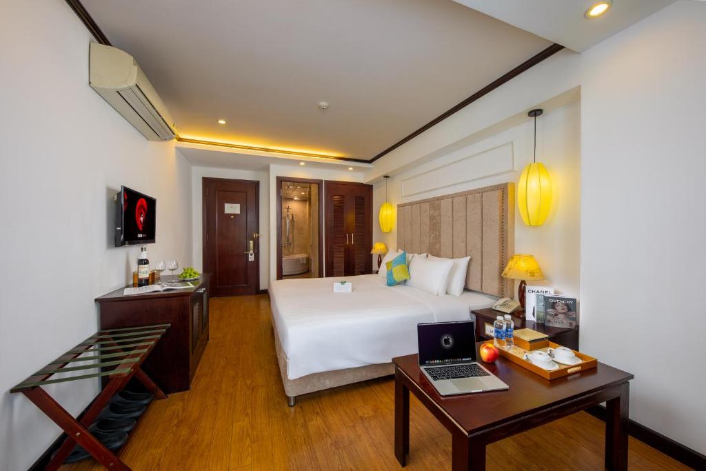 Các phòng tại khách sạn được thiết kế hài hòa, kết hợp nội thất hiện đại với gam màu nhẹ nhàng, tạo nên một không gian thư giãn sang trọng. Mỗi phòng đều được trang bị máy điều hòa, tủ quần áo, ấm đun nước, minibar, két an toàn, TV màn hình phẳng cùng phòng tắm riêng với vòi sen và đầy đủ tiện nghi cao cấp.