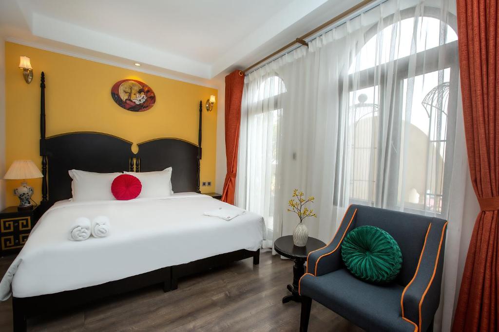 • Silk Signature Penthouse: tầng 9, giường tròn phủ khăn lụa thêu tay, chai champagne rosé lạnh sẵn + hộp bánh cốm gói lụa