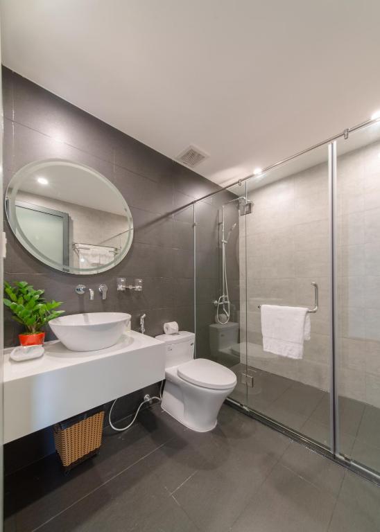 • 🚿 Phòng tắm riêng hiện đại, trang bị đầy đủ khăn tắm, đồ vệ sinh cá nhân