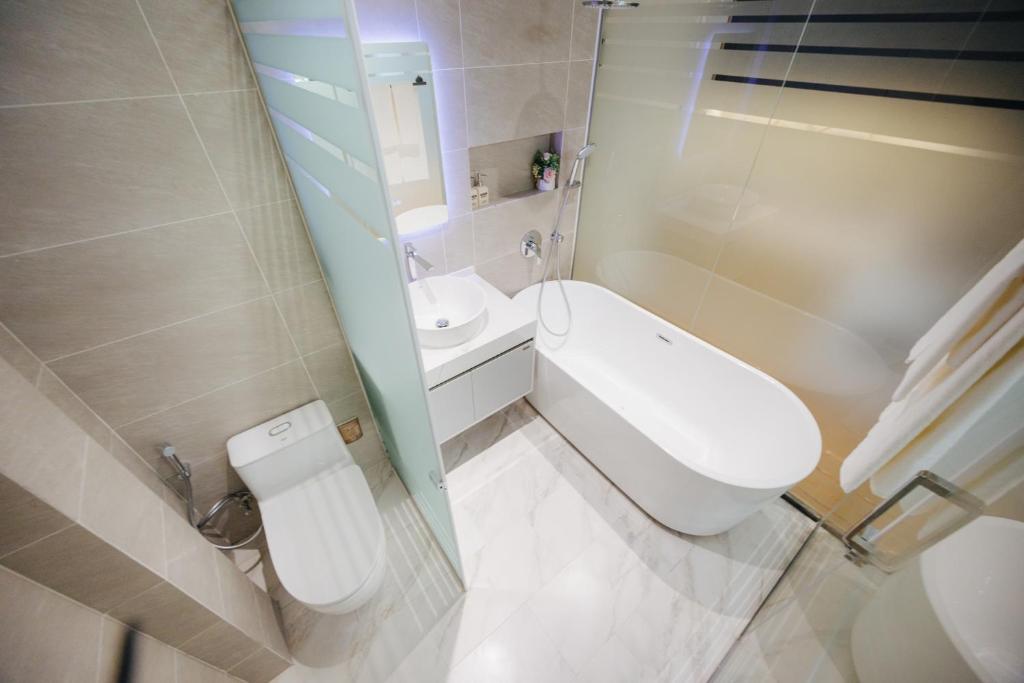 Tất cả các căn hộ tại Madison Urban Stay đều có phòng tắm riêng hiện đại, đi kèm đầy đủ tiện nghi từ vòi sen, bồn tắm, vòi xịt/chậu rửa vệ sinh cho đến đồ dùng cá nhân miễn phí. Không gian sạch sẽ, sáng sủa kết hợp cùng trang thiết bị cao cấp giúp bạn có được sự thoải mái tuyệt đối sau một ngày dài di chuyển.